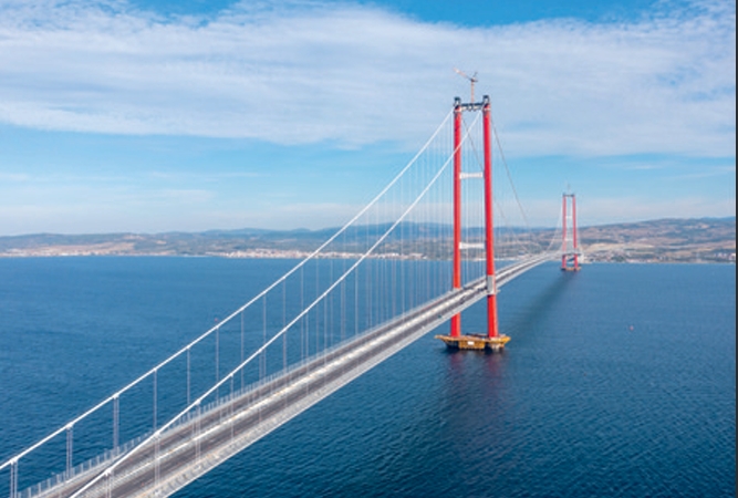 Inaugurato il 18 marzo 2022, è il ponte più grande del la Turchia e, con i suoi 2.023 metri di luce tra le due torri di circa 70 me tri di altezza, è il più lungo ponte sospeso, o a campata unica, del mondo. Il secondo ponte sospeso, di 32 metri più corto del Canakkale Bridge, è il Ponte dello Stretto di Akashi in Giappone. Ha una campata unica di 1991 metri, è lungo complessivamente 3.911 metri e collega due città su due isole giapponesi. È stato inaugurato il 5 aprile 1998 ed è attraversato da circa 23mila veicoli al giorno che pagano un pedaggio di 18 euro.